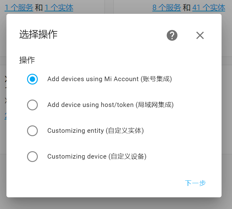 请注意:你应该优先使用账号集成,即使你和我一样,不想让控制命令经过小米服务器,优先使用本地控制时。