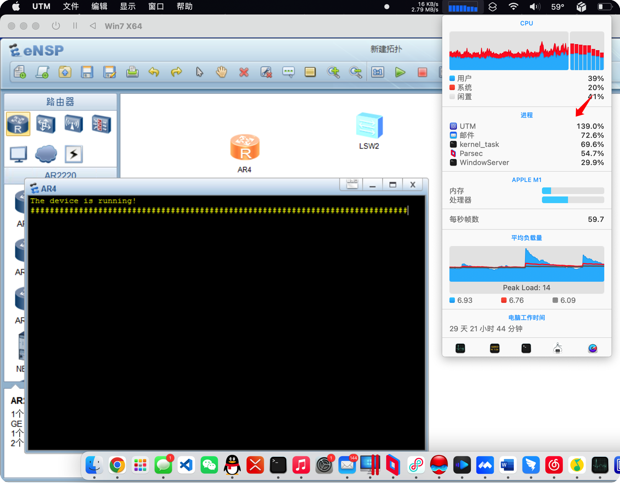 奇迹发生了,AR在跑数行后就成功运行,虽然相比PC平台,这个速度慢了很多,但是胜在能够使用Mac模拟网络拓扑了。