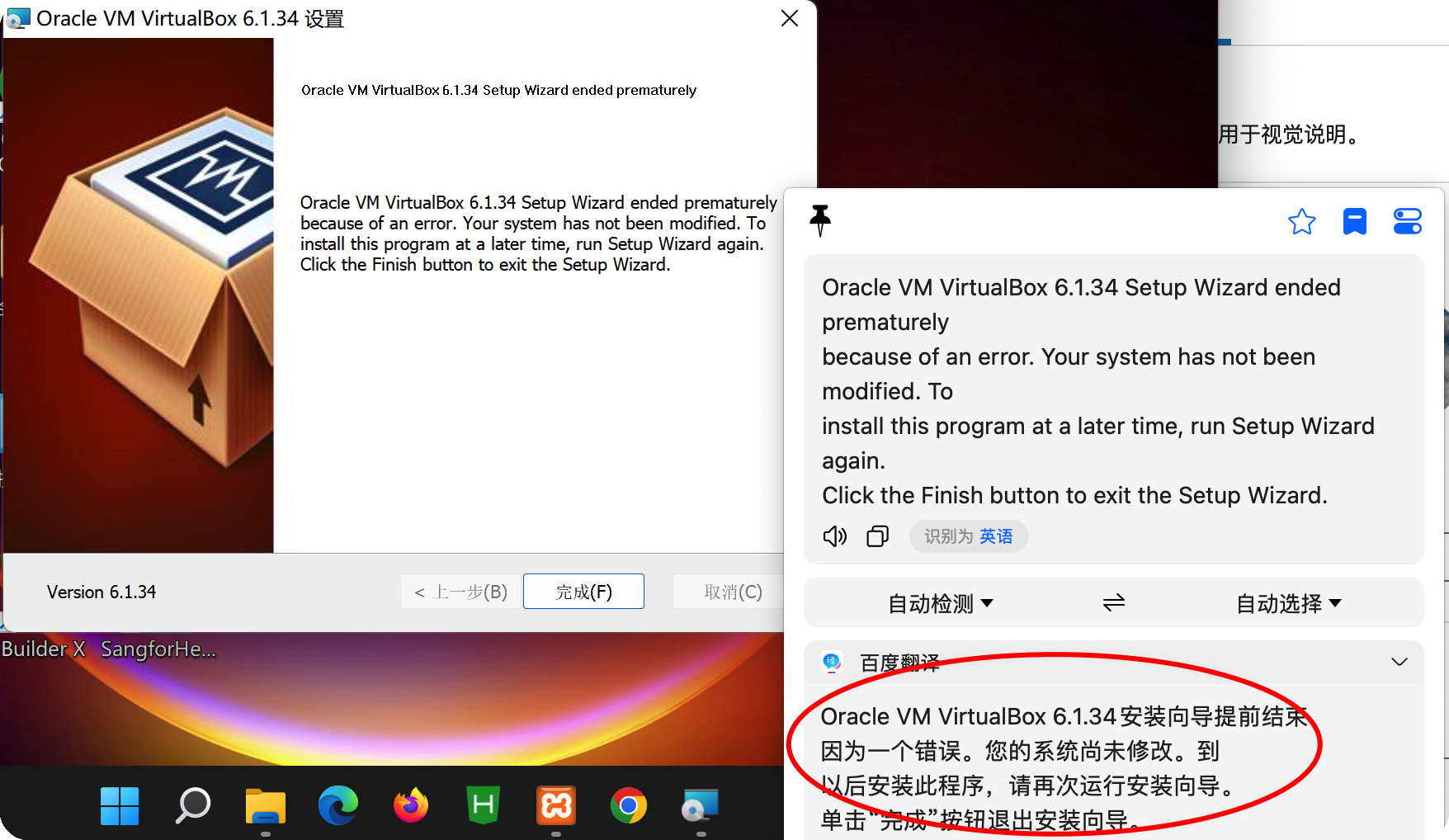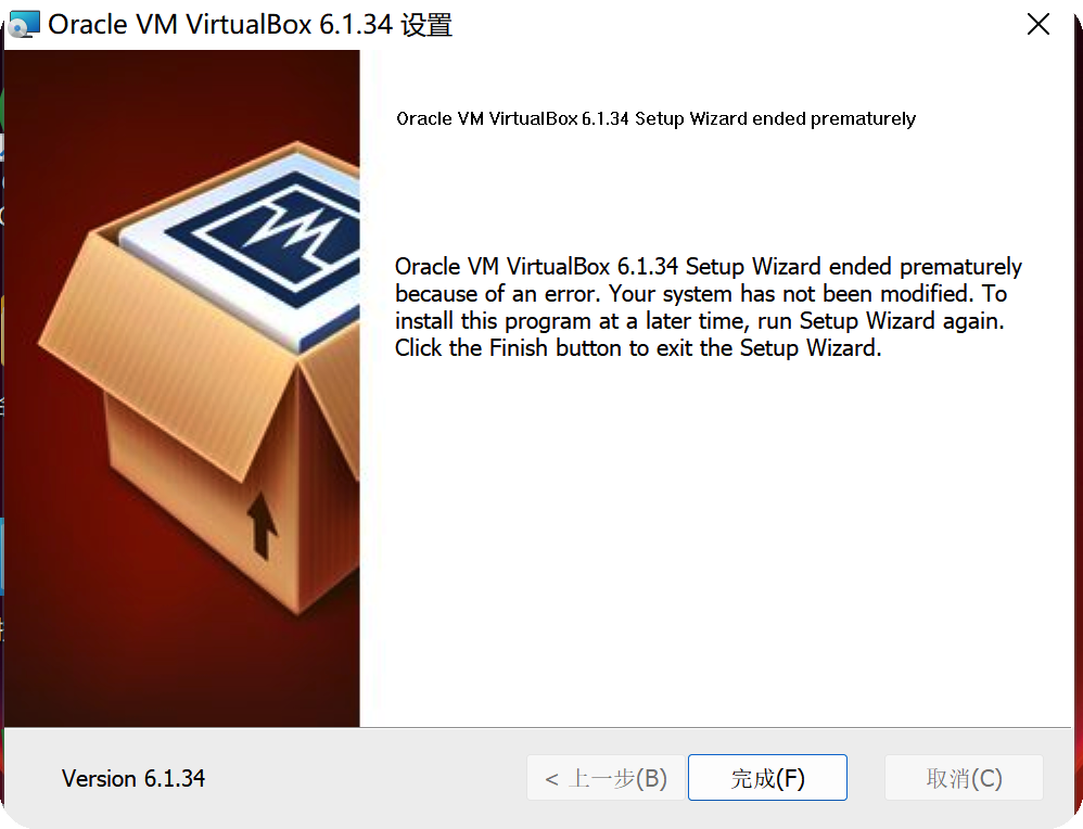 ENSP内的网络设备基于Oracle VirtualBox ,在我刚刚开始安装VirtualBox就出现了问题,它提示我无法继续安装,因为遇到无法解决的问题。