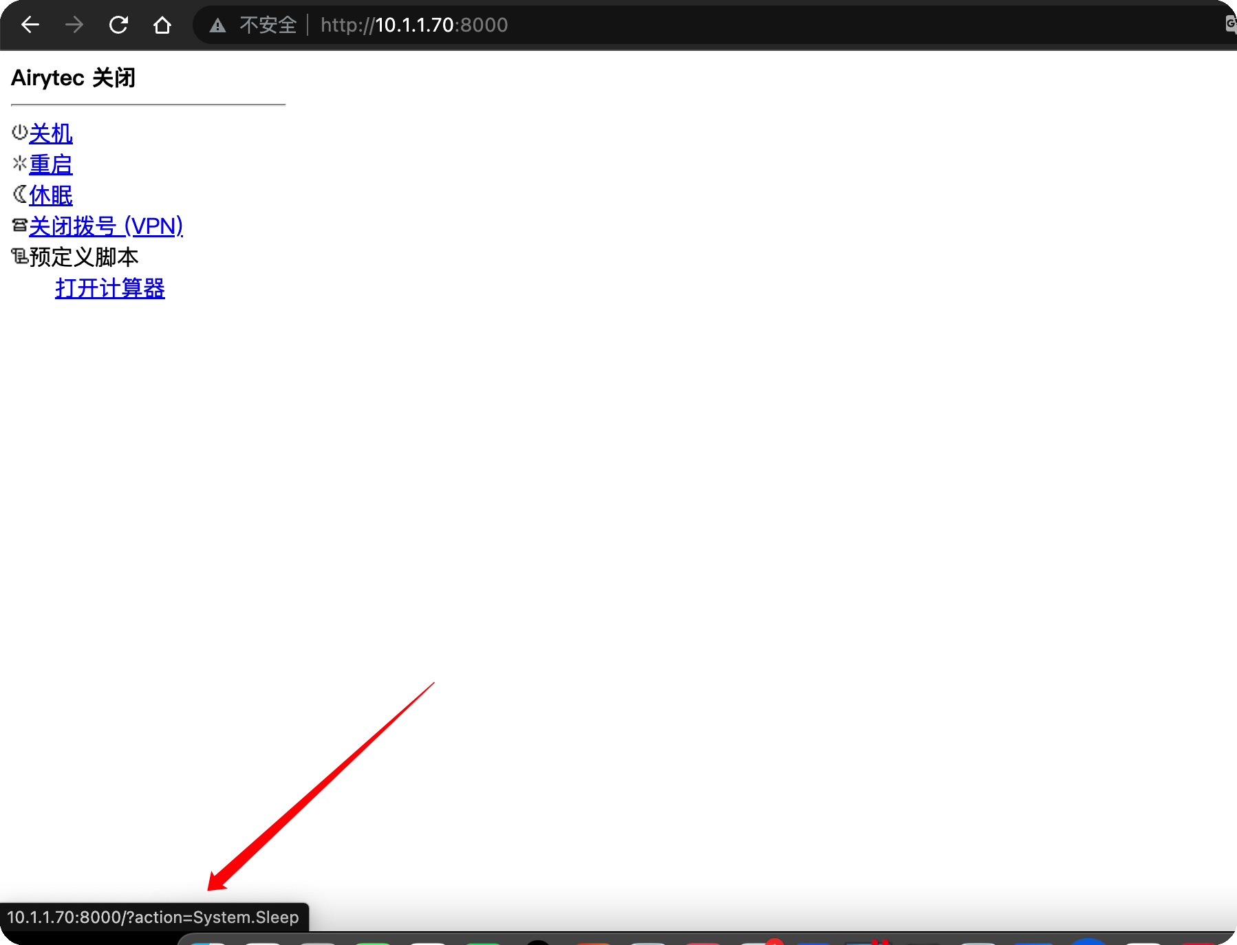3、获取让电脑休眠的URL地址。