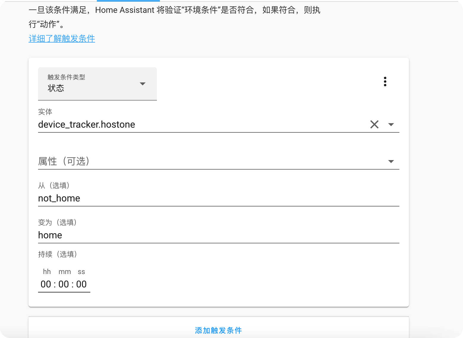 「配置帮助:“home”状态为在线,“not_home”状态为不在线。」